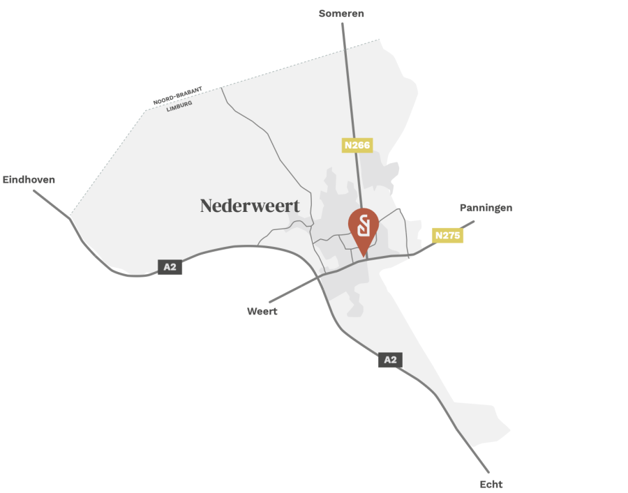Vanuit De Staat bent u snel op weg. Dankzij de nabijheid van de N266 en N275 staat u binnen 10 minuten in Weert en bereikt u Eindhoven of Roermond in slechts 30 minuten. Ideaal voor wie de rust van het dorp wil combineren met de mogelijkheden van de regio.