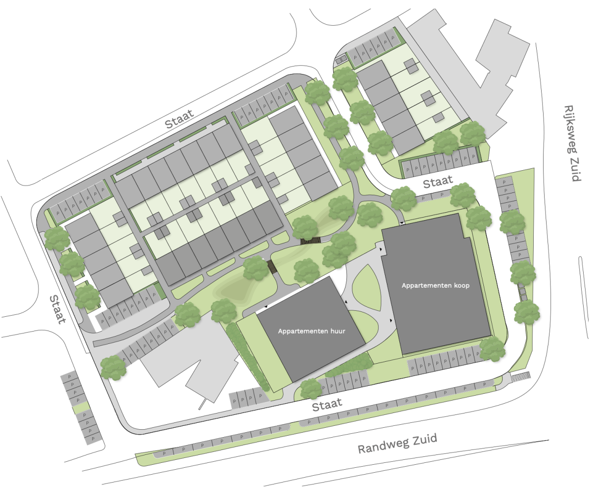 De Staat biedt een breed scala aan woningtypes, variërend in grootte, indeling en prijsklasse. Van sociale huur tot koopwoningen, van grondgebonden woningen tot appartementen.